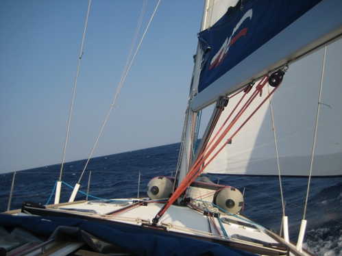 Poned el horizonte derecho, horizontal, y os daréis cuenta de lo escorado que va el velero. ¡Esto es navegar!!! ¡Pero qué vacaciones!